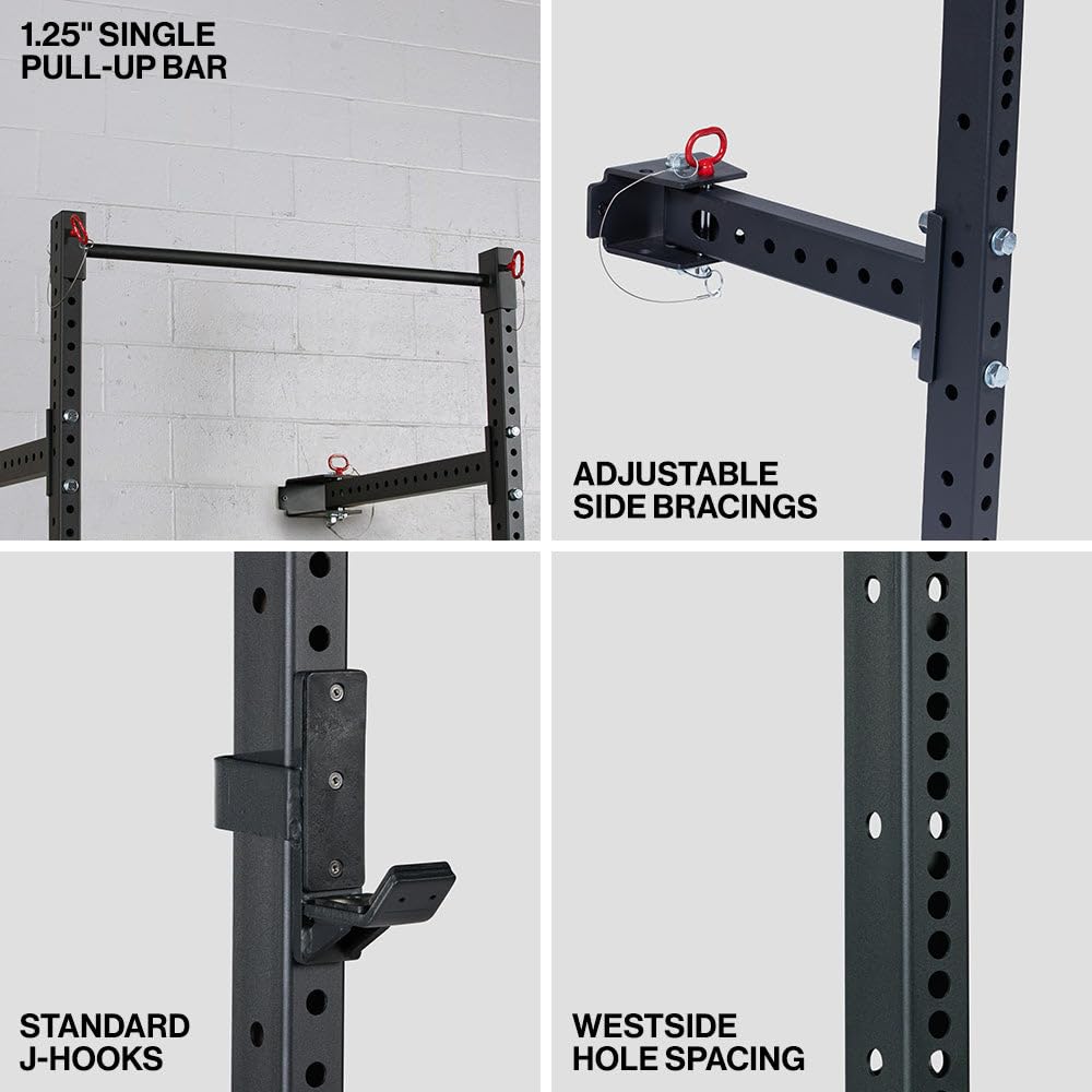 - SPACE-SAVING FOLDING RACK: Get full power rack performance in a wall-mounted folding design that folds flat when not in use - perfect for maximizing home gym space.